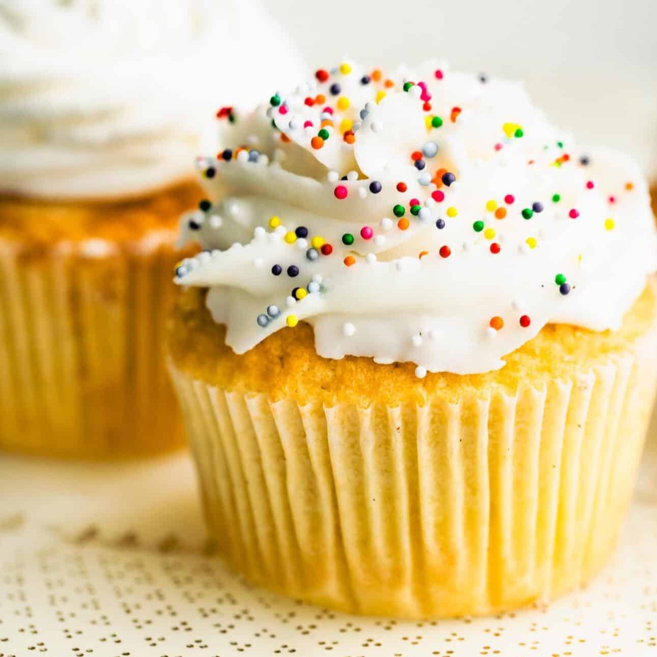These vanilla cupcakes come together with minimal prep time and just a handful of simple ingredients.